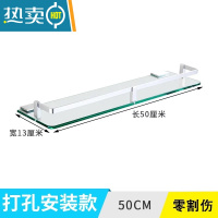 敬平浴室单层化妆平台架免打孔卫生间镜子下面的置物架玻璃洗漱台托盘 [打孔]50厘米[可安装回旧孔]浴室置物架