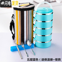 三维工匠304不锈钢保温饭盒分隔型学生上班族便携食堂分格便当餐盒套装1人 北欧粉5格+餐具保温袋