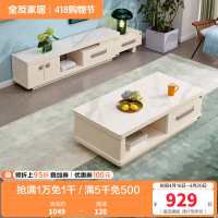 全友家居茶几电视柜组合现代简约客厅电视柜茶几钢化玻璃石材台面小户型白色伸缩电视柜