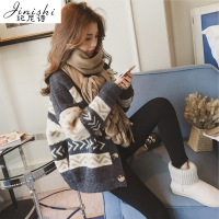 锦铭七玥韩版春装新款宽松显瘦混色毛衣中长款针织衫女开衫长袖披肩外套