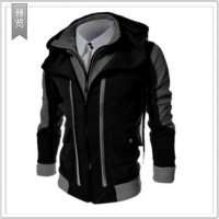 秋冬装开衫拉绒外套假两件拼接休闲男士卫衣