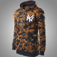 新款高品质迷彩连帽开衫棒球衫拉绒男士修身卫衣