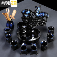 三维工匠霁蓝全半自动功夫茶具套装家用简约陶瓷窑变懒人防烫过滤冲泡茶器 双貔貅套组霁蓝款(13件)