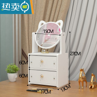 敬平ins网红镜子旋转台式化妆镜学生宿舍桌面收纳美容便携美妆梳妆镜便携式用镜 猫耳朵单抽屉-B