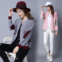 秋冬拼色毛衣开衫厚外套女秋装2017新款潮春秋加厚韩版宽松短款冬