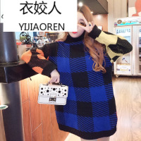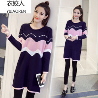 衣姣人(YIJIAOREN) 2018女装中长款针织毛衣裙女秋冬套头毛衣连衣裙加厚拼色春新款针织衫