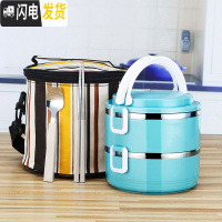 三维工匠学生日式保温桶饭盒便当盒不锈钢保温学生双层大容量饭盒套装2层 北欧彩三层配保温袋加餐具