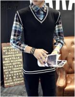 YANXUV领毛衣背心男ins潮流无袖坎肩韩版学院风拼色针织马甲衬衫套