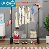 敬平简易晾衣架落地立式卧室挂衣服架子加粗小型阳台家用晾衣器结实 110宽[黑双杆]弯腿弯管 中