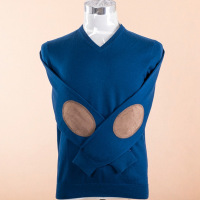 男款羊绒衫精纺100%山羊绒毛衣冬季加厚v领套头男装补丁袖针织衫