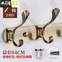 三维工匠卫生间不锈钢衣服挂钩免打孔美式挂衣钩墙壁浴室排钩衣帽钩壁挂钩 青古7钩打孔免钉双用