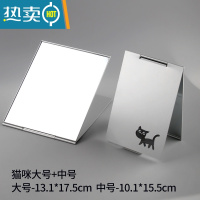 敬平化妆镜便携折叠镜子大小号梳妆台梳妆镜学生宿舍迷你桌面可台式 猫咪中号+大号便携式用镜