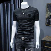 刺绣短袖T恤男修身2026夏男士丝光棉体恤潮男装上衣几何图案帅气