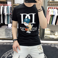短袖T恤男圆领潮牌ins印花卡通夏季丝光棉体恤男上衣修身几何图案