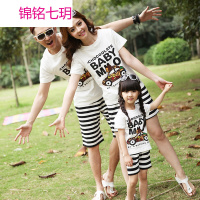 锦铭七玥夏季新款母子装亲子装纯棉睡衣全家装短袖休闲卡通条纹家居服套装