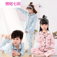 锦铭七玥亲子长袖纯棉睡衣韩版男童可爱女孩套装儿童家居服全家装一件代发