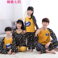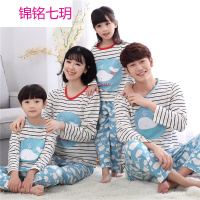 锦铭七玥春秋季新品韩版长袖棉亲子装睡衣男女一三口庭装儿童居服