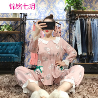 锦铭七玥厂家批发纯棉双层纱布女睡衣春秋家居服亲子装母女睡衣儿童套装