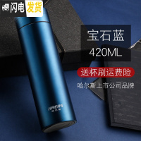 三维工匠保温杯 商务办公茶杯不锈钢 男女士便携时尚直身水杯子定制 宝石蓝