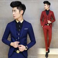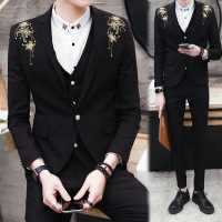 潮牌男装时尚刺绣修身西装三件套型男美发师修身西服套装外套