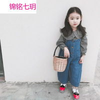 锦铭七玥女童牛仔背带裤春季新款韩国童装高档休闲九分裤女宝吊带裤潮
