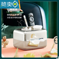 敬平ins轻奢纸巾盒 银色桌面客厅收纳盒茶几简约复古法式创意抽纸盒 银色多功能纸巾盒-侧面取纸-无弹簧
