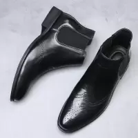 轻奢尖头切尔西靴英伦套脚皮靴时尚潮流百搭商务男靴子
