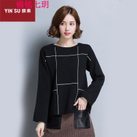 锦铭七玥2018桐乡濮院春季款女装针织条纹圆领短款休闲套头女士毛衣