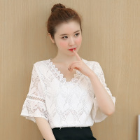 薇侣2017新品夏装新款蕾丝钩花缕空蕾丝衫V领喇叭袖宽松显瘦薄上衣
