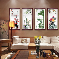 梅兰竹菊挂画新中式沙发背景墙面壁画餐厅饭厅水墨国画客厅装饰画