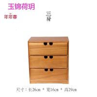 桐木抽屉式桌面收纳盒木质办公桌书桌木制收纳柜三抽整理盒木盒子