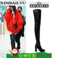 品牌过膝长靴女靴子2017秋冬新款粗跟高跟瘦弹力靴高筒靴黑色黑色