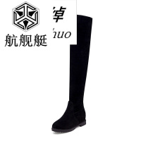 过膝长筒靴女低跟2017秋冬新款圆头百搭显瘦弹力靴马靴绒面骑士靴