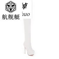 春秋季新款女鞋韩版弹力瘦腿靴高跟骑士靴长靴过膝靴高筒靴女靴子白色34加绒