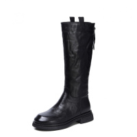 头层牛皮骑士靴女冬季新款复古百搭显瘦粗跟后拉链高筒机车靴
