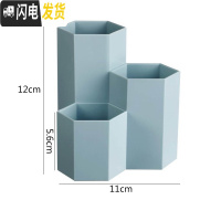 三维工匠可爱创意文具简约多功能学生小清新塑料收纳桌面笔筒时尚办公用品 六边形蓝色(3619)