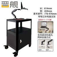 晋舰电脑设备架推车检测车工作台黑色带柜+显示器+笔记本电脑支架