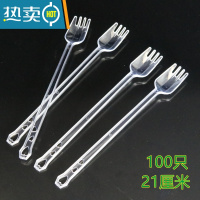 敬平加长 水果叉水果签 水果茶叉勺一体超长叉子加厚奶茶长柄勺 透明独立包装 100只长21厘米
