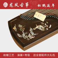 龙凤牌古筝初学者考级演奏筝工艺筝黑檀嵌彩松鹤延年实木乐器手工制作雕刻民族乐器_M32