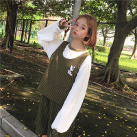 珂依舍2017秋装实拍早秋韩版条纹背心松紧腰五分裤百搭套装