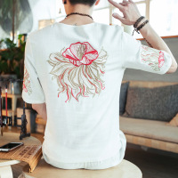 中国风刺绣男士短袖亚麻休闲套装夏季半袖五分裤大裤衩男装2017潮
