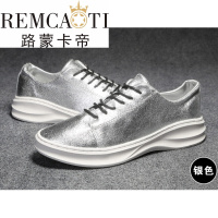 鞋小二男鞋潮牌板鞋男韩版潮流休闲鞋春季漆皮皮鞋发型师亮面厚底增高潮鞋镜面松糕鞋子