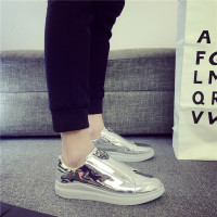 春季厚底板鞋男GD权志龙同款韩版男鞋子潮流休闲鞋学生漆皮亮面松糕鞋潮鞋镜面