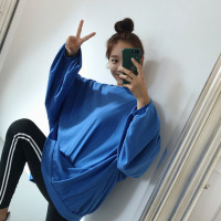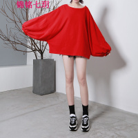 薇侣2017新品韩版秋装新款宽松大码大灯笼袖圆领中长款T恤