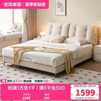 全友家居奶油风布艺床新款主卧室猫抓绒布云朵软包双人大床
