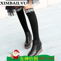 2017秋冬新款长靴女过膝长筒靴高跟靴高筒靴鞋防水台靴子潮黑色黑色