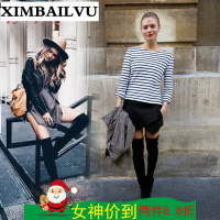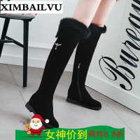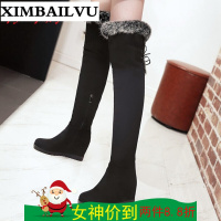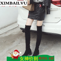锦铭七玥过膝靴长靴女靴2017秋冬新款瘦腿弹力靴子平底高筒加绒潮