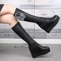 2017秋冬女靴子兔毛高筒靴内增高长靴女松糕厚底高跟马丁靴皮靴子