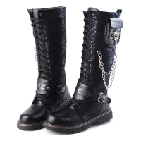 韩版高筒靴男长筒靴摇滚朋克皮靴磨砂潮机车靴大头厚底系带马丁靴