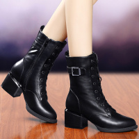马丁靴高帮粗跟短靴2017新款秋冬季女鞋子百搭高跟机车靴加绒棉鞋